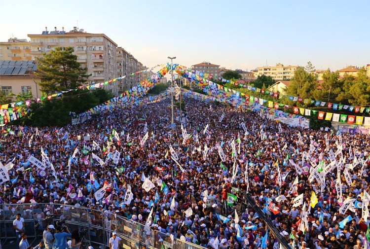 PeyamaKurd – Partiya Demokratîk a Gelan (HDP) bi boneya 1ê Îlonê Roja Aştiyê ya Cîhanî li Qada Îstasyonê ya Diyarbekirê mîtingek li dar xist.