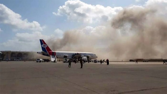 Doh 30yê Kanûnê li balafirgeha Edenê, dema gihîştina balafira hikumeta Yemenê ya nû 2 teqînên bi hêz çêbûn.