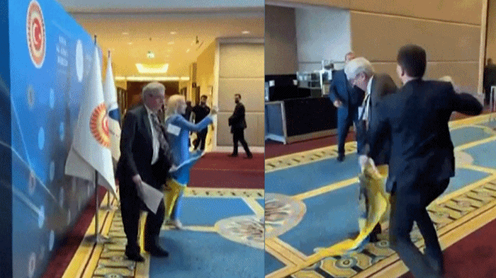 Nûnerê Ukraynayê Oleksandir Marikovski li Lûtkeya Aborî ya Rêxistina Welatên Perava Deryaya Reş, ku li Enqereya paytexta Tirkiyê birêve çû, tomareke vîdeoyê li ser rûpela xwe ya taybet belav kir û di dîmenan de tê dîtin ku dema ala welatê xwe bilind dike, ji nişka ve Serokê Şanda Rûsyayê yê li lûtkeyê, ala Ukraynayê ji destê Oleksandir Marikovski dikişîne û vedigere.