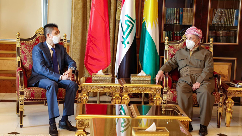 PeyamaKurd- Serok Mesûd Barzanî, Balyozê Çînê yê Iraqê Cui Wei û şanda ligel wî qebûl kir. Li gorî ragihandina Baregeha Barzanî, di hevdîtinê de li ser mijarên siyasî yên herêmê û pêwendiyên dualî guftûgo hatine kirin.