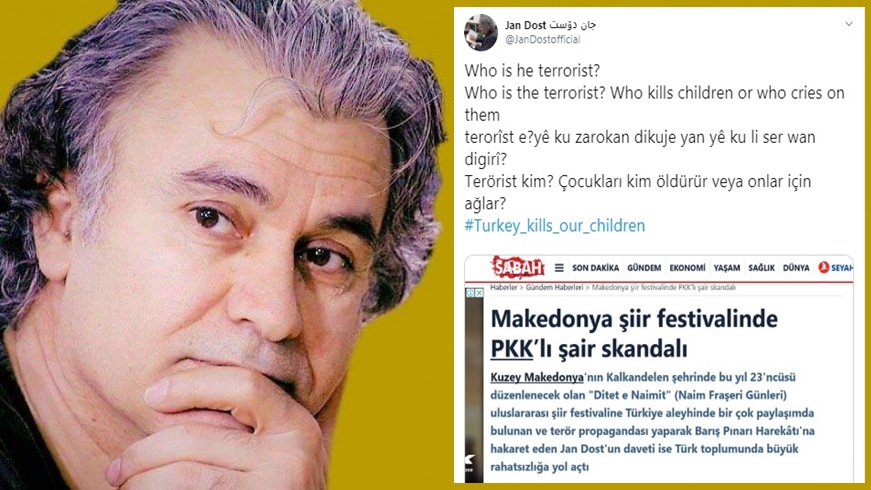 PeyamaKurd – Nivîskar, helbestvan û romanivîsê Kurd ê ji Rojavayê Kurdistanê Jan Dost ku wekî nûnerê Kurdistanê beşdarî festîvala navnetewî ya helbestê “Ditet e Naimit” (Rojên Naim Fraşeri) ya li Makedonyayê bû, di medya Tirkiyê de rastî êrîşan hat.