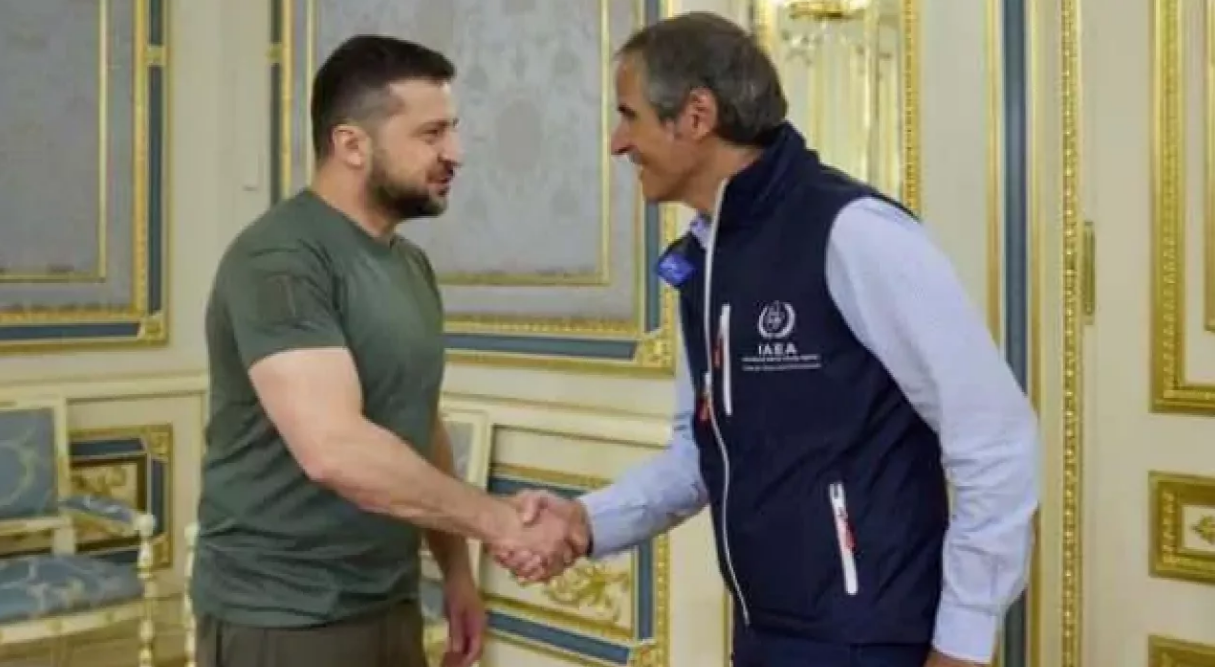 Serokê Saziya Enerjiya Atomî ya Navneteweyî Rafael Mariano Grossi û şanda ligel wî, li Kievê ligel Volodimir Zelenskiy hevdîtin kir. Zelenskiy, li ser hesabê xwe yê medyaya civakî, agahiyên di derbarê naveroka civînê de ragihandin.