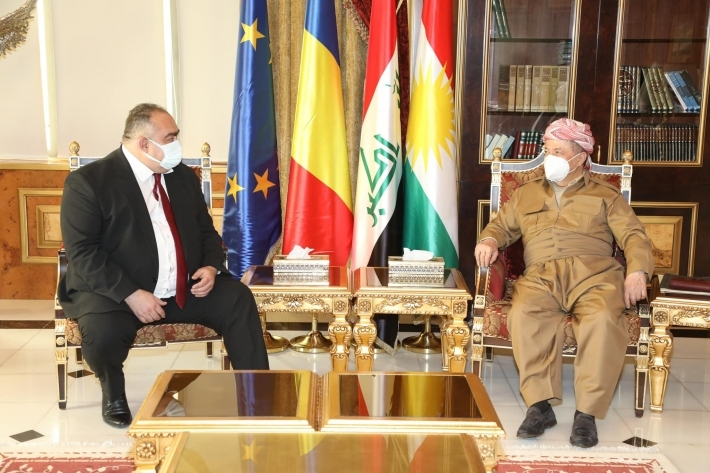 Serok Barzanî di civînê de, pîrozbahî li balyozê nû yê Romanya yê Iraqê kir û jê re serkeftin xwest.