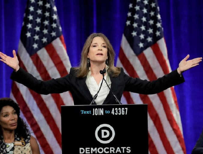 Williamson, nivîskara pirtûkên ku herî zêde tên firotin ên wekî "Bandora Siyê, Vegera Evînê, Guherîn, A Year of Miracles” e û di heman demê de ji bo hilbijartina serokatiyê ya 2020an jî namzet bû. Williamson da zanîn ku ew "siyaseta evînê" dimeşîne lewra pirsgirêkên bi bexşînên kampanyayê re û nebûna piştgiriya têra xwe, beriya hilbijartinên pêşîn xwe ji pêşbaziyê vekişandibû.