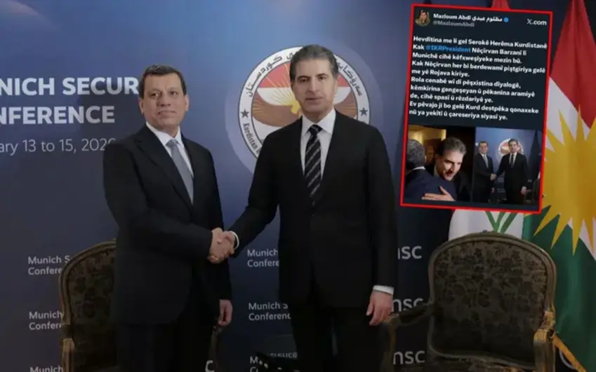 Fermandarê Giştî yê HSDê Mazlûm Ebdî di dema Konferansa Ewlehiyê ya Munchenê ya li Almanya de bi Serokê Herêma Kurdistanê Nêçîrvan Barzanî re civiya.