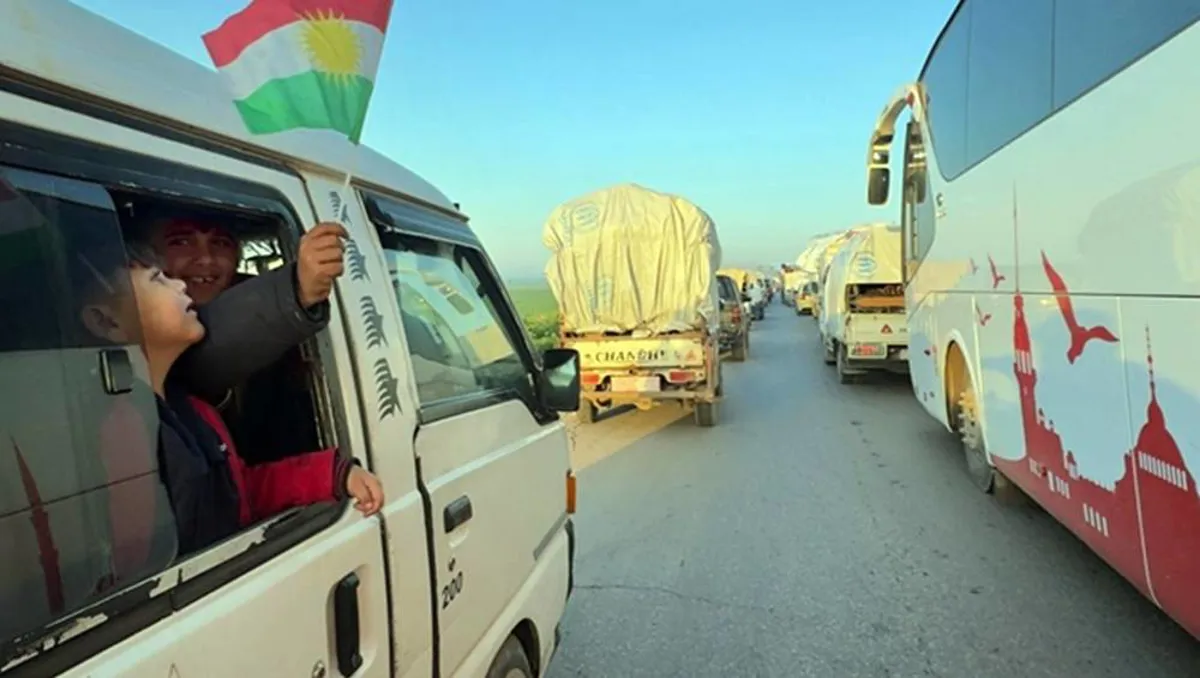 PeyamaKurd - Hate ragihandin ku îro 14ê Nîsanê di çarçoveya Peymana 29ê Çileyê ya navbera HSD û Şamê de, 800 malbatên koçberên Efrînê ji herêma Cizîrê ya Rojavayê Kurdistanê ber bi bajarê xwe ve bi rê ketin.