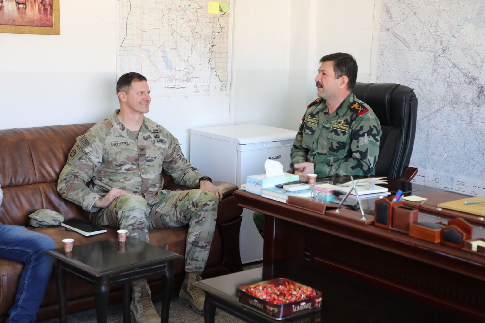 Wezareta Pêşmerge diyar kir; şêwirmendên payebilind ên wezaretê Lîwa Rukn Bextiyar Mihemed û Emîd Rukn Hejar Umer pêşwazî li Cîgirê Şêwirmendê Bilind ê Serbazî yê Hevpeymaniya Navdewletî Colonel Tad Boros kirin.