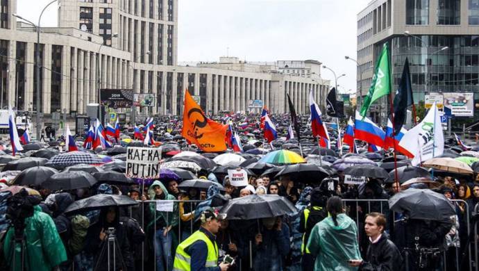 Bi deh hezaran kesên li paytextê Rûsya Moskowê li hev kom bûn û meşiyan. Girseya xwepêşander li dijî astengkirina tevlîbûna hin namzetan li hilbijartinên xwecihî yên 9ê Îlonê yên li Rûsyayê çalakiyên protestoyî li dar xistin.