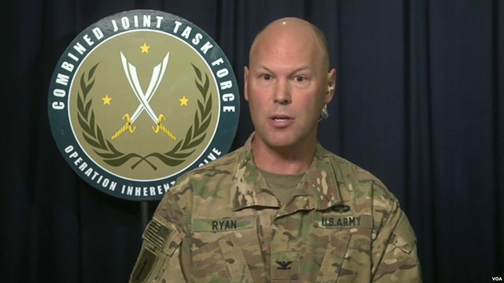 Li gor nûçeya di kanala televizyonê Al-Hurra ya Amerîkî de derket, Berdevkê Hevpeymana Navneteweyî ya Dijî DAIŞê ya di pêşengiya Amerîkayê de Serbaz Sean Ryan, li Abu Dabiya paytextê Mîrektiyên Yekbûyî ya Erebî daxuyaniyek bo çapemeniyê da.