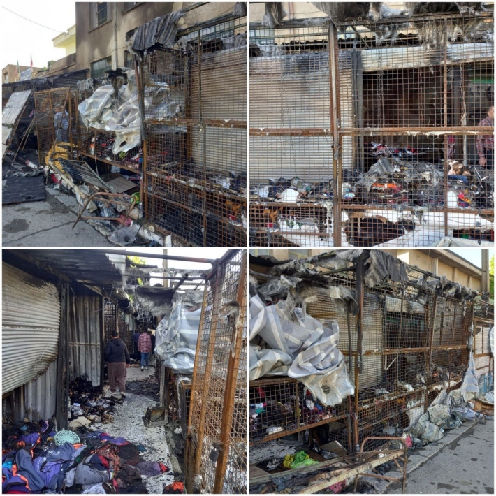 Li gor Berpirsê Berevaniya Sivîl li bajarê Sine Suheyl Wezîrî diyar kiriye, derengiya şeva borî agir bi bazara kincên kevin ket.