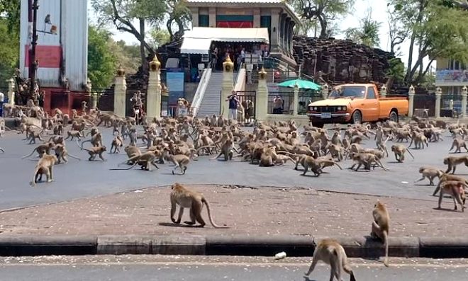PeyamaKurd – Bi sedan meymûnên ku birçî mabûn, li welatê Taylandê bi ser navenda bajarê Songkhla de girtin û dîmeneke tirsnak derxistin holê.