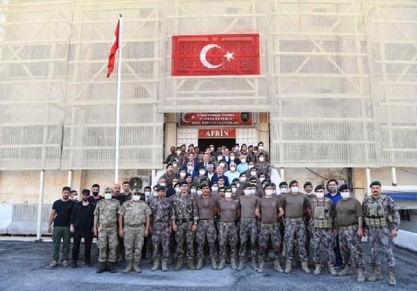 Suleyman Soylu li Efrînê destpêkê serdana Navenda Alîkariyên Mirovî û Nexweşxaneya Şîfa kiriye û paşê çûye serdana Biryargeha Operasyonên Taybet a Polîs li Efrînê û li wê derê ji polîsan re gotarek daye.