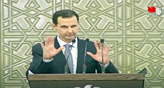 Piştî hinekî bêhna xwe da, Beşar Esed vegeriya ser kursî da ku gotara xwe temam bike.