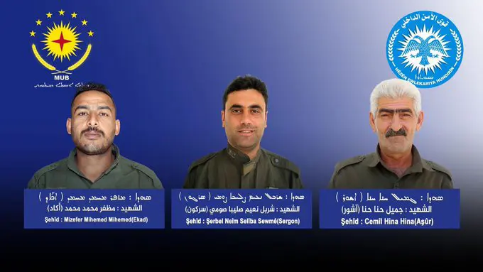 Hate zanîn ku navê endamên asayîşê yên di êrîşa Tirkiyê de can dane; Şerbel Naim Saliba, Cemil Hanna û Muzaffar Muhammad e