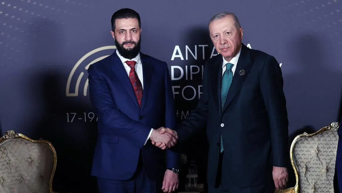 PeyamaKurd - Serkkomarê Tirkiyeyê Recep Tayyip Erdogan, di çarçoveya Foruma Dîplomasî ya Antalyayê (ADF2026) de bi Serokomarê Sûriyeyê Ehmed Şara re hevdîtinek pêk anî. Erdogan, li ser peymana 29ê Çileyê ya navbera Şam û HSDê diyar kir, bi awayekî aram dawîbûna proseya entegrasyonê ya li bakurê rojhilatê Sûriyeyê (Rojavayê Kurdistanê), dê bibe berjewendiya hemû herêmê.