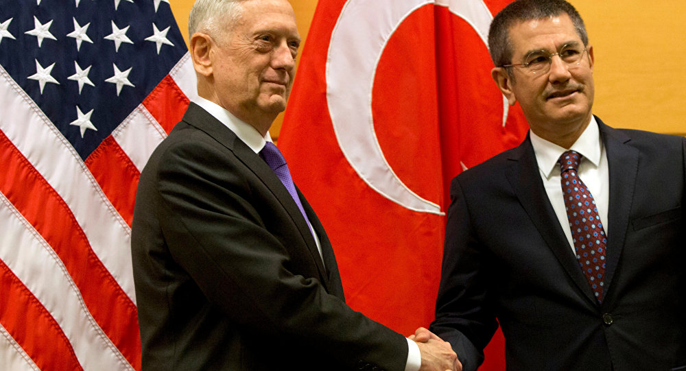 James Mattis Wezîrê Parastinê yê Amerîkayê li Brukselê bi Wezîrê Parastinê yê Tirkiyeyê Nûreddin Canikli re hevdîtinek kir û piştî hevdîtinê daxuyaniyek da dezgehên ragihandinê. Mattisî got:”Her çend Amerîka derheqê endîşeyên ewlehiyê yên Tirkiye fêm bike jî, lê diyar e di gelek mijaran de em û Tirkiyeyê wek hev nafikirin.”