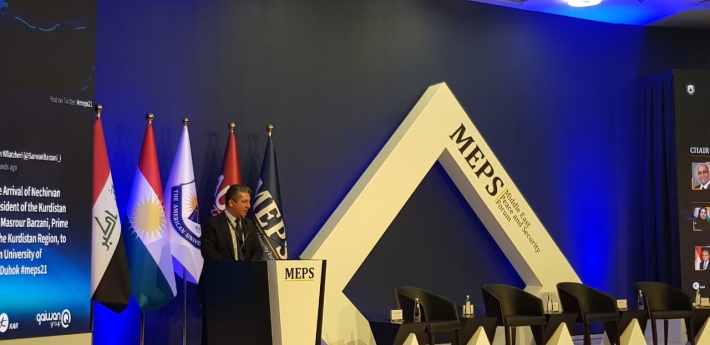 Serokwezîrê Herêma Kurdistanê Mesrûr Barzanî di gotara xwe de ragihand, “Bêguman welatê me û herêm bi giştî di qonaxeke hestiyar re derbas dibe. Pêwîst e di vê korbendê de bi pêşkêşkirina nêrîn û gotaran, tekezî li ser xalên girîng ên bandora wan li ser herêmê bi giştî heye bikin ku ji bilî keşûhawaya siyasî, guhertin di keşûhawaya xwezayî jî çêbûye ku dikare bandorê li pêwendiyên welatên herêmê bike.”