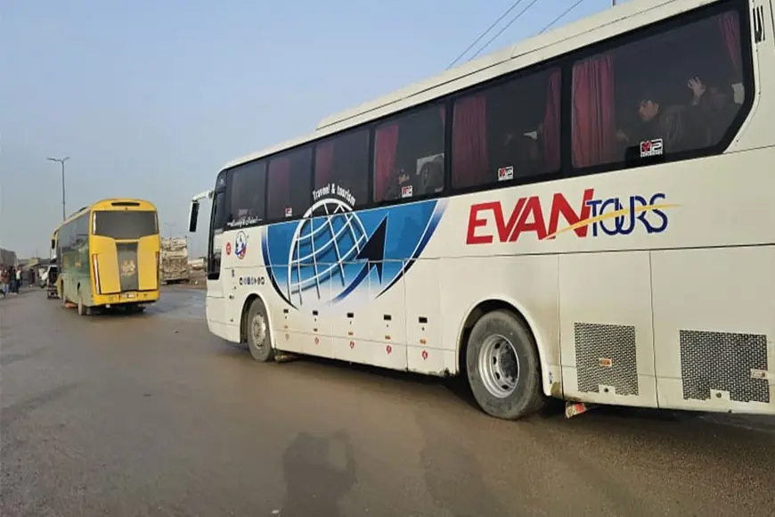 PeyamaKurd - Di çarçoveya rêkeftina di navbera Hêzên Sûriyeya Demokratîk (HSD) û hikûmeta demkî ya Sûriyê de, karwanê duyem ê koçberên ji Efrîna Rojavayê Kurdistanê îro (4ê Nîsana 2026an) ji bajarê Qamişlê ber bi warê xwe ve bi rê ket.