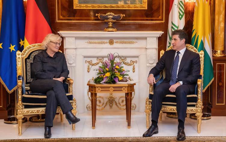 Di 9 ê mehê de wezîra bergiriyê ya Almanya Christine Lambrecht bi serokê Herêma Kurdistanê bi Nêçîrvan Barzanî re li Hewlêrê hevdîtin kiribû û piştî hevdîtinê seredana baregeha leşkerên Almanya kiribû. Lambrecht, li baregehê bi rojnamevanan re axifîbû û di derbarê IŞİD ê de weha gotibû: