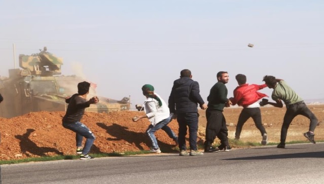 PeyamaKurd - Hat ragihadin ku îro dema dewriyeya Rûs-Tirk a li rojhilatê Kobaniyê ku ji aliyê xelkê ve bi keviran hat protesto kirin, ji aliyê leşkerên Tirkiyê ve gule bi ser sivîlan de hatine reşandin û hejmarek xelkê sivîl û hin rojnamevan birîndar bûn.