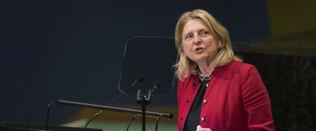 Wezîra Awûstûryayê got ku bi sedema wan kesên di nava şer û pevçûnan de dijîn, divê dengên wan bigihê civîna Neteweyên Hevgirtî û bi wê sedemê axaftina xwe ya ewilî bi Erebî kir û bi zimanên dinê dewam kir. Kneissl ragihand ku di Rojhilata Navîn de, piştî belavbûna împaratoriyeta Osmaniyan, nexşeya dewletên herêmê li gor xettên petrolê hatiye parvekirin û weha dewam kir: