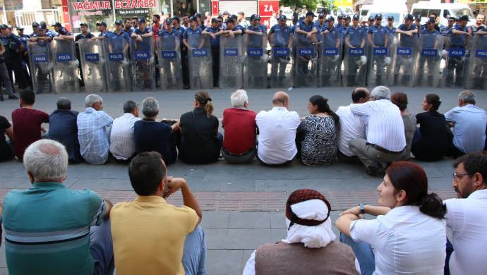 Parlamenter, hevşaredar, endamên meclîsa şaredariyê û rêveberên HDPê yên ku xwestin li pêş Şaredariya Bajarê Mezin a Amedê daxuyaniyê bidin çapemeniyê, rastî dorpêça polîsan hatin û girseyê di bin dorpêça polîsan de, dest bi çalakiya rûniştinê kir.