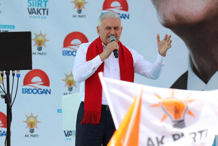Bînalî Yildirim li Meydana Bajêr ya Sêrtê di mitînga AKPê de axivî.