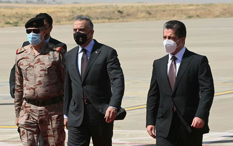 Îro pêncşemê 10ê Îlona 2020an, Mistefa Kazimî, Serokwezîrê Iraqê hat Hewlêrê û Mesrûr Barzanî, Serokwezîrê Herêma Kurdistanê li balafirgehê pêşwaziya wî kir.
