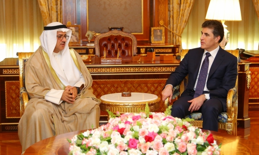 PeyamaKurd - Serokê herêma Kurdistanê Nêçîrvan Barzanî îro li Hewlêrê pêşwazî li konsûlê Kuweytê li herêma Kurdistanê Dr. Omer El Kinderî kir.