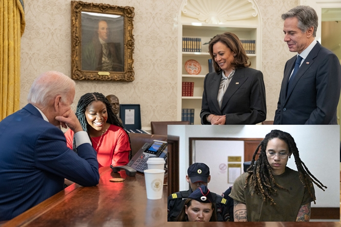 Herwiha Biden, wêneyên axaftina ligel Griner bi telefonê jî belav kirin ku Cîgira Serok Kamala Harris û hevjîna Griner Cherelle jî ligel wan bûn.