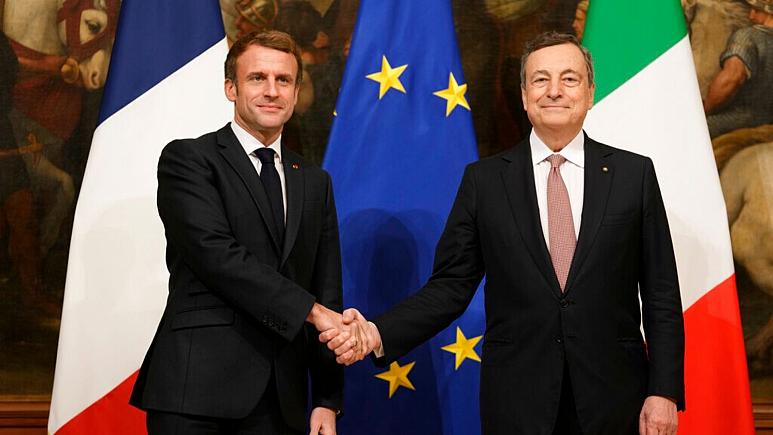 پەیمانی هاوکاری فەڕەنسا و ئیتاڵیا ئەمڕۆ لە حاڵێکدا لە لایەن ئێمانۆئێل ماکرۆن و ماریۆ دراگی یەوە واژوو کرا کە فەڕەنسا لە سەرەتای ساڵی داهاتووەوە سەرۆکایەتی دەورەیی یەکیتی ئەورووپا دەگرێتە ئەستۆ .