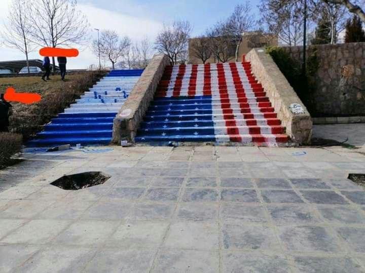 پەیامی کورد   ...    وێنە کردنی ئاڵای ئیسرائیل و ئەمریکا لە سەر قادرمەکانی زانکۆی کوردستانی " سنە " بۆ تێپەڕبوونی خەڵک بە سەریدا ، بەڵام  !!!