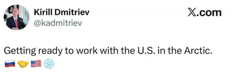 🟠کیریل دیمیتریڤ، سەرۆکی سندووقی وەبەرهێنانی ڕاستەوخۆی ڕووسیا (RDIF) و نوێنەری تایبەتی سەرۆکی ڕووسیا بۆ وەبەرهێنان و هاوکاری ئابووری لەگەڵ ووڵاتانی دەرەوە ڕایگەیاند، مۆسکۆ بەنیازە هاوکارییەکانی لەگەڵ واشینتۆن لە جەمسەری باکوور پەرەپێبدات.