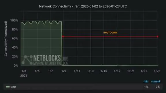 نێت بلاكس ڕایگەیاند كە ئێران هێشتا لە هەفتەی سێیەمی پچڕانی ئینتەرنێتی سەرتاسەری دایە و داتا تەکنیکییەکان تەنیا زیادبوونی کەمی پەیوەندی گشتی نیشان دەدەن. بەپێی ووتەی ڕێکخراوی چاودێری ئینتەرنێت، ئەم زیادبوونە سنووردارە لەگەڵ گەڕانەوەی ئینتەرنێتی بەربڵاو و بەردەوام دا ناگونجێت.
