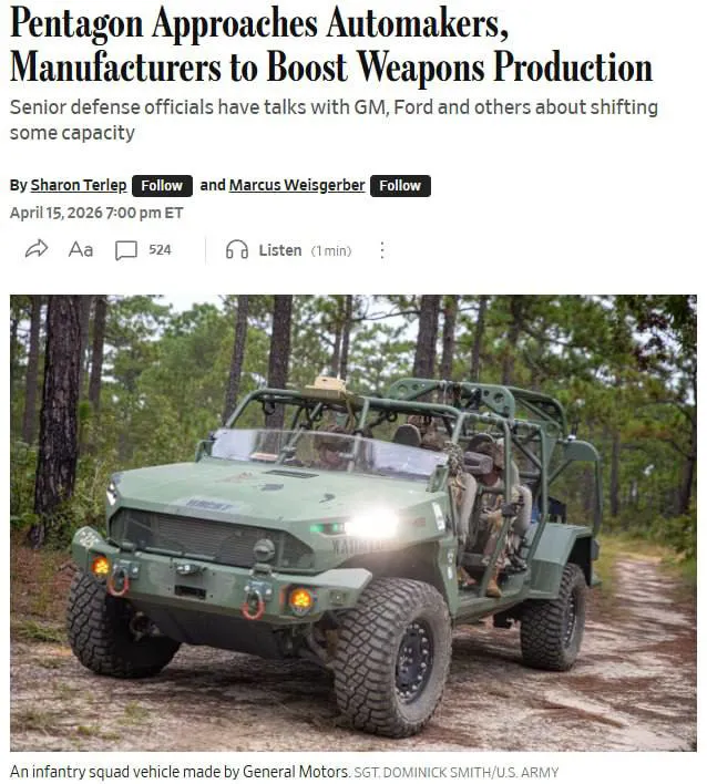 بەپێی ڕاپۆرتێکی ڕۆژنامەی (Wall Street Journal)، پێنتاگۆن داوای لە کۆمپانیا گەورەکانی بواری ئۆتۆمبێل وەک (General Motors) و (Ford) کردووە هاوکاری بکەن لە زیادکردنی بەرهەمهێنانی چەکی ئەمریکی ، ئەمەش بەهۆی ئەوەی جەنگ و ململانێیەکان فشارێکی زۆریان خستووەتە سەر جبەخانە و پێداویستییە سەربازییەکانی ووڵاتەکە.