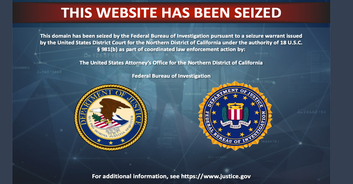 تا ڕۆژی چوارشەممە سەردانیکەرانی ئەو سایتانە نامەیەکیان بینیوە کە لۆگی وەزارەتی دادی ئەمریکا و ئێف بی ئای بەناونیشانی ( ئەم سایتە دەستیبەسەرداگیراوە ) و ڕونیدەکاتەوە کە ئەم دۆمەینە لەلایەن FBI ەوە كۆنتڕۆڵكراوە و لەسەر بنەمای فەرمانی دەستبەسەرداگرتن کە لەلایەن دادگای ناوچەی باکور لەکالیفۆرنیا دەرچوە، كارەكە ئەنجامدراوە.