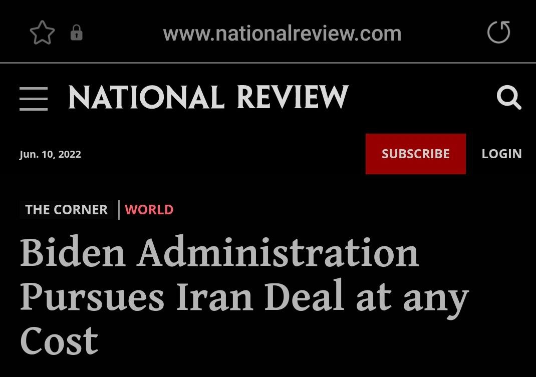 پەیامی کورد ... نەشناڵ ڕێڤیۆ NATIONAL REVIEW :دەوڵەتی بایدن بە هەر نرخێک بە دوای زیندوو کردنەوەی ڕێکەوتننامەی بەرجام لەگەڵ ئێران ە .