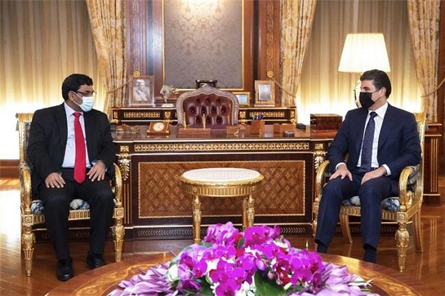 سهرلهبهیانی ئهمڕۆ یهكشهممه 18/10/2020 نێچیرڤان بارزانی سهرۆكی ههرێمی كوردستان پێشوازی له بیرەندەر سینگ یاداڤ باڵیۆزی هێندستان له عێراق كرد.