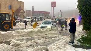 بە پێی زانیاری و وێنەکان شاری " ئەلباحە " لە ڕۆژهەڵاتی عەرەبستان بینەری بارینی تووندی تەرزە بووە کە بووەتە هۆی داخرانی شەقامەکانی ئەو شارە