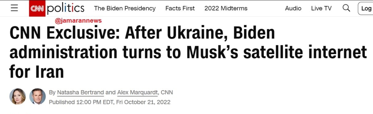 سی ئێن ئێن ڕایگەیاند کە دەوڵەتی بایدن لە حاڵی ووتووێژکردن لەگەڵ ئیلۆن ماسک ، خاوەنی کۆمپانیای سپەیس ئیکس ە ، تاکوو ئینتەرنێتی سەتەلایتی لە ناوخۆی ئێران چالاک بکات .