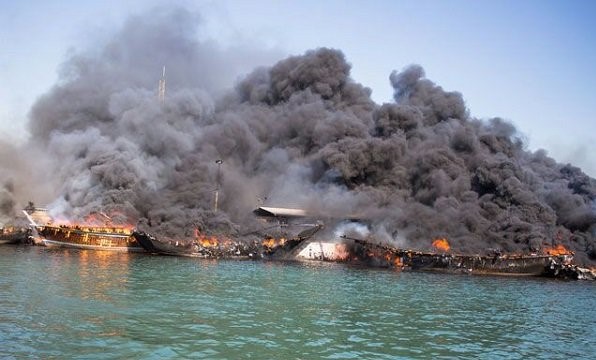 بەگوێرەی هەواڵەکان لە شاری بووشەهر ئاگر لە زنجیرەی کەشتیە بارهەڵگرەکانی دەربەندی ئاوی ئەو شارە کەوتوەتەوە و لانیکەم ٧ کەشتی گڕیانگرتوە.