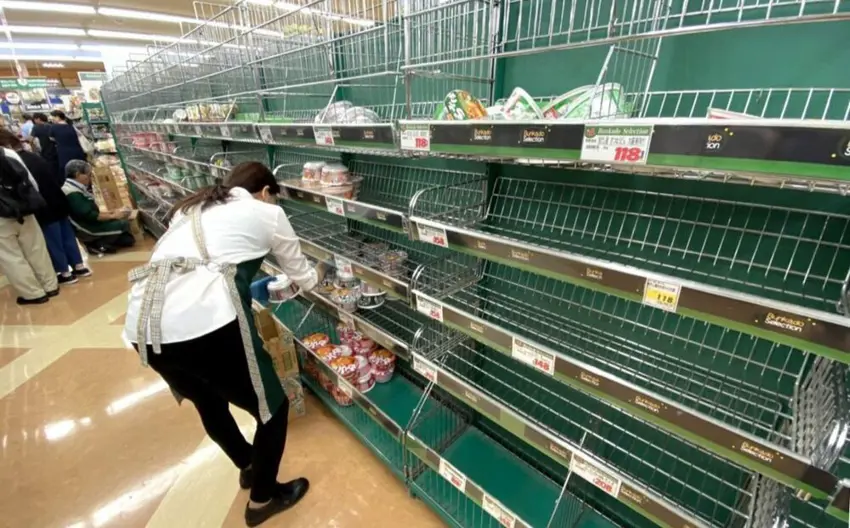 لە ڕۆژی پێنجشەممەوە کە یەکەم هۆشداری بوومەلەرزە گەورەکان لە ژاپۆن دەرکرا، خەڵک بەپەلە ڕوویان لە دوکانەکان کردووە بۆ کڕین و کۆکردنەوەی خۆراک.
