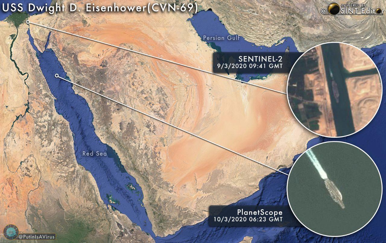 بە پێی هەواڵ و زانیارییەکان کەشتی فڕۆکە هەڵگری USS Dwight D. Eisenhower (CVN- 69 " یوو ئێس ئێس دڤایت ئایزێنهاور " دوای تێپەڕبوون لە کەناڵی سوئێز گەیشتە دەریای سوور .
