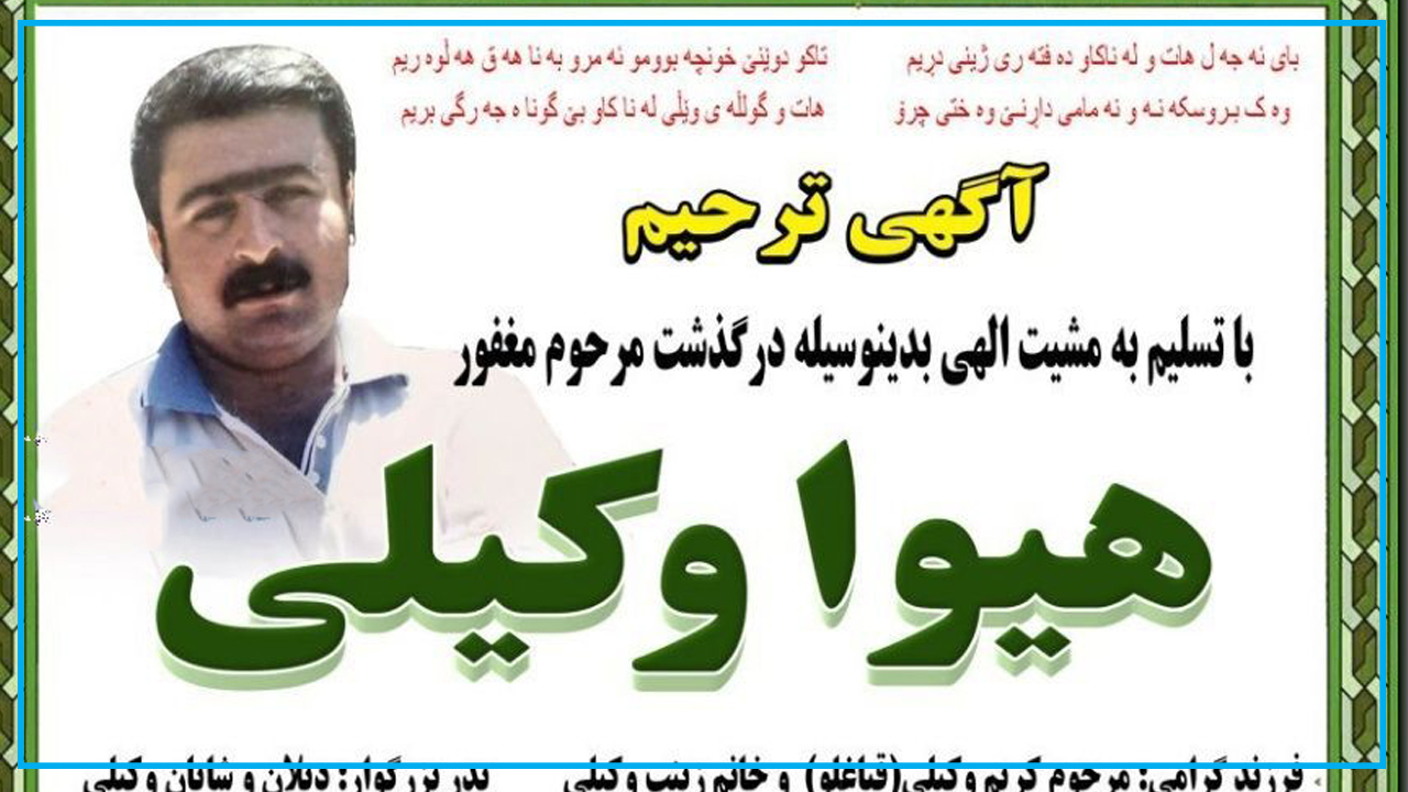 بەپێی ڕاپۆرتی ڕێکخراوی مافی مرۆڤی هەنگاو، شەوی سێشەممە ٢٢ی ڕەزبەری ٢٧٢٠ (١٣ی ئۆکتۆبری ٢٠٢٠٠)، هێزە ئینتزامییەکانی ئێران لە جاددەی سەقز بۆ دیواندەرە شوێن ئۆتۆمبێلی کاسبکارێکی کورد کەوتوون و بەو هۆیەوە ئۆتۆمبێلەکە وەرگەڕاوە و لەئاکامدا شۆڤیرەکەی بە ناوی ”هیوا وەکیڵی“ گیانی لە دەست داوە.
