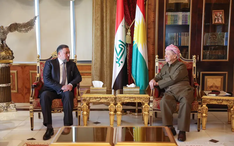 سەرۆک بارزانی لەگەڵ خەمیس خەنجەر کەسایەتی دیاری سیاسی عێراق، دوا پەرەسەندن و گۆڕانکارییەکانی ناوچەکە تاوتوێ دەکەن.