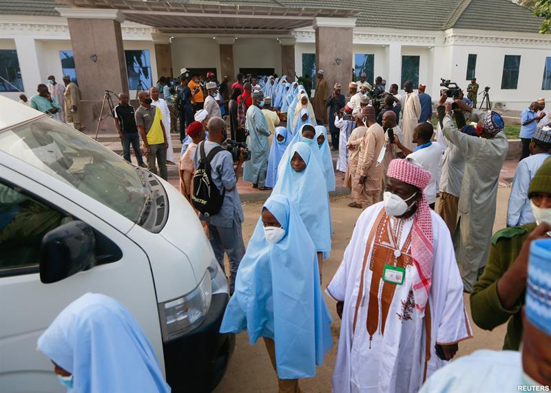ئەو کچە خوێندکارانەی ڕۆژی هەینی ڕابردوو لە قوتابخانەکەیان لە باکوری ڕۆژئاوای نایجیریا ڕفێندران و ڕۆژی سێشەممە ٢ی٣ی٢٠٢١، ئازادکران و گەڕانەوە بۆ ناو خێزانەکانیان .