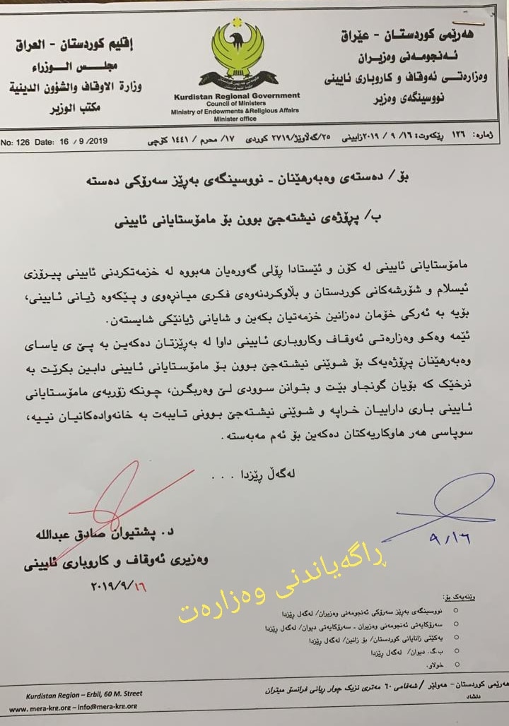 له نووسراوهكهی وهزارهتدا كه واژۆی وهزیری ئهوقافی لهسهره، ئاماژه بهوهكراوه، مامۆستایانی ئایینی له كۆن و ئێستادا رۆڵی گهورهیان ههبووه له خزمهتكردنی ئایینی پیرۆزی ئیسلام و شۆڕشهكانی كوردستان و بڵاوكردنهوهی هزری میانڕهوی و پێكهوه ژیانی ئایینی، بۆیه به ئهركی خۆمانی دهزانین خزمهتیان بكهین و شایستهی ژیانێكی شایستهن.