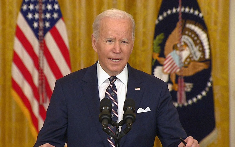 سەرۆککۆماری ئەمریکا جگە لەوەی کە جەختی کردەوە کە هاوتا ڕووسەکەی شەڕ دژی ئۆکراینی هەڵبژارد و دەبێ پاشهاتەکانی قەبووڵ بکات هەواڵی لە ڕەزامەندی خۆی بۆ سەپاندنی گەمارۆگەلی تووند و بەهێز لە دژی ڕووسیا دا .