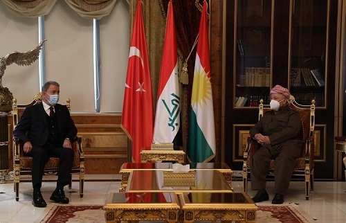 ڕۆژی سێشەممە 19ـی 1ـی 2021 لە سەلاحەددین سەرۆك مەسعوود بارزانی پێشوازی لە خلووسی ئاكار وەزیری بەرگری توركیا و شاندێكی یاوەری كرد كە پێكهاتبوو لە یاشار گولەر سەرۆك ئەركانی سوپای توركیا و هاكان كاراچای كونسووڵی گشتیی توركیا لە هەولێر و ژمارەیەك ڕاوێژكار و كاربەدەستی وەزارەتی بەرگری توركیا.