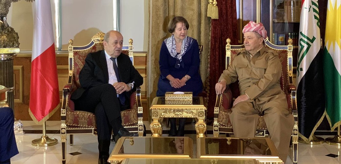 پەیامی کورد ... پێش نیوەڕۆی ئەمڕۆ لە سەلاحەددین، مەسعود بارزانی، سەرۆكی پارتی دیموكراتی كوردستان و ژان ئێف لۆدریان، وەزیری دەرەوەی فەرەنسا كۆبونەوەیەكیان ئەنجامداو دواتر بارزانی رایگەیاند،"دەبێت چارەنوسی كوردانی سووریا و قوربانیدانیان لەبەرچاو بگیرێت"